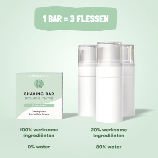Dit is geen gewone scheerbar met zeep! Nee, onze scheerbar bevat een zacht schuimmiddel. Dit heerlijke zachte schuim zonder agressieve sulfaten zorgt voor een fijne beleving tijdens het scheren. Het is eenvoudig te verdelen en blijft lekker lang ‘op de huid liggen’, zodat je alle tijd hebt om grondig aan je scheerbeurt te beginnen. Zeg gedag tegen sulfaten, uitdrogende zeep en (micro)plastic en hallo tegen de ultieme scheerbeleving met onze Shaving Bar Eucalyptus – Tea Tree.