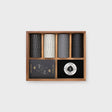 Luxe houten presentatiedoos met speelkaarten, 100 aangepaste pokerchips en metalen dealerchip. Voor de meer veeleisende kaarthaai.