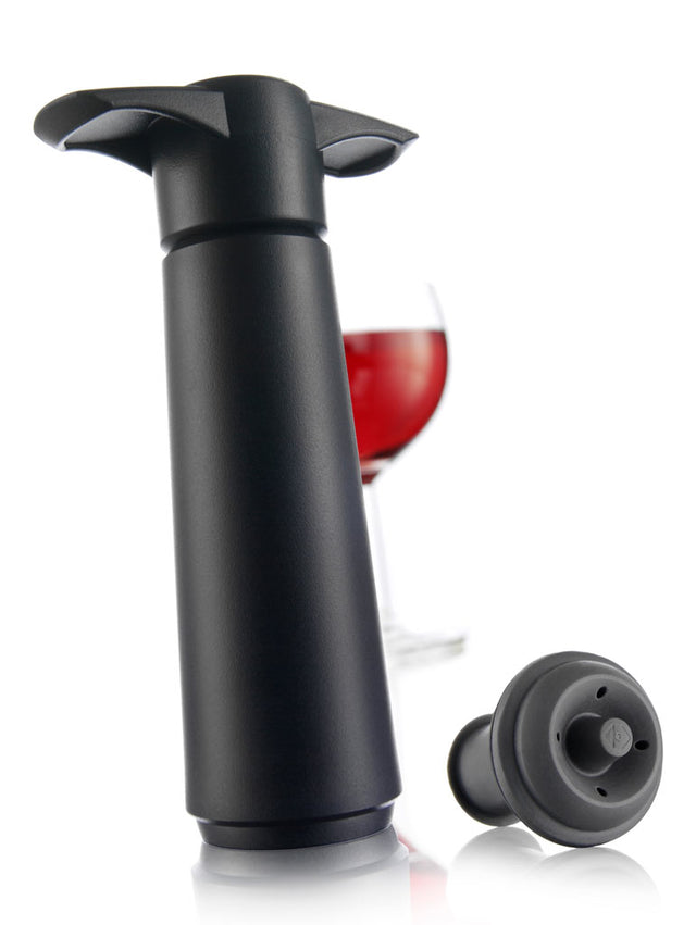 De Vacuum Wine Saver van Vacu Vin bestaat uit een vacuümpomp met bijbehorende afsluitdop, die het mogelijk maakt om een geopende fles wijn vacuüm af te sluiten en hierdoor langer te bewaren.