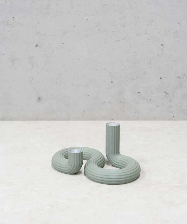 DOUBLE CANDLE HOLDER - MUTED GREEN