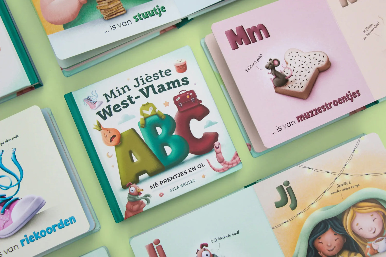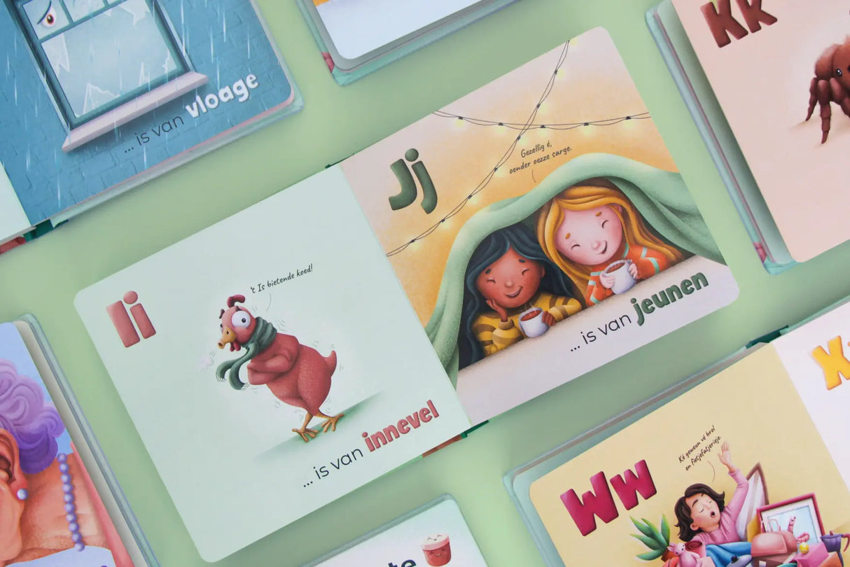 Met kleurrijke en originele illustraties bij elke letter neemt dit kartonboek je mee op een speelse reis door het West-Vlaams. Ideaal voor kleine én grote West-Vlamingen die willen kennismaken met de woorden en klanken van onze streek.