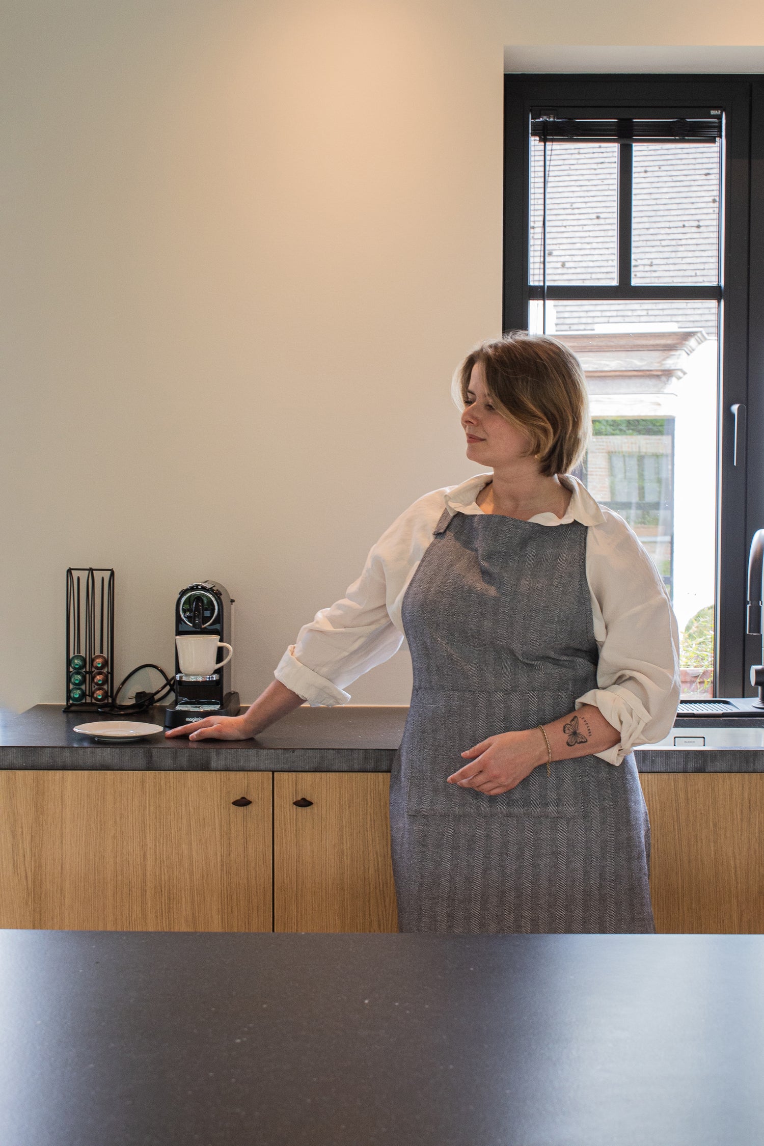 Je kan de keukenschort combineren met eventueel de bijpassende keukenhanddoeken en grippers om je look te vervolledigen.