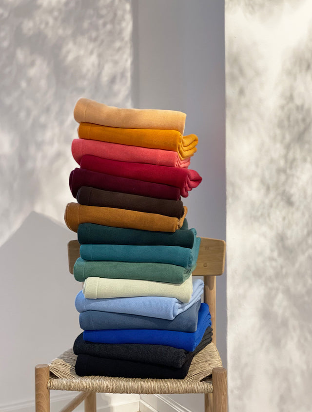 Elke plaid is gemaakt van gerecycleerd wol (overschotten wol van tapijten) waardoor er minder CO2 uitstoot is.