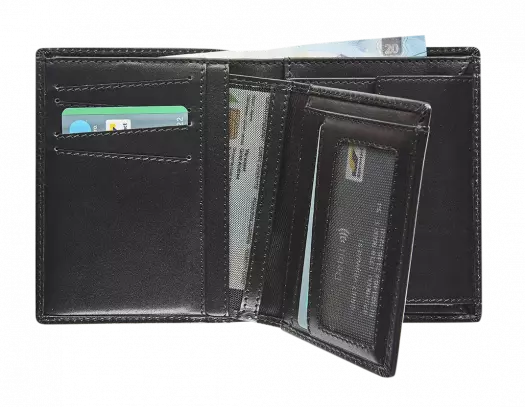 Deze portefeuille heeft een uitneembare kaarthouder die je kan gebruiken als weekendportefeuille. Met ruimte voor 6 creditcards, 2 ID-vakken, een kleingeldvak en 2 biljetvakken. De RFID-bescherming werkt als een firewall en blokkeert elektro-magnetische energie. Kaarten met RFID-chips zijn op deze manier beveiligd tegen illegaal uitlezen of kopiëren. Je OV-chipkaart bijvoorbeeld, creditcards, ID-kaarten en paspoorten. Let’s go, bro!